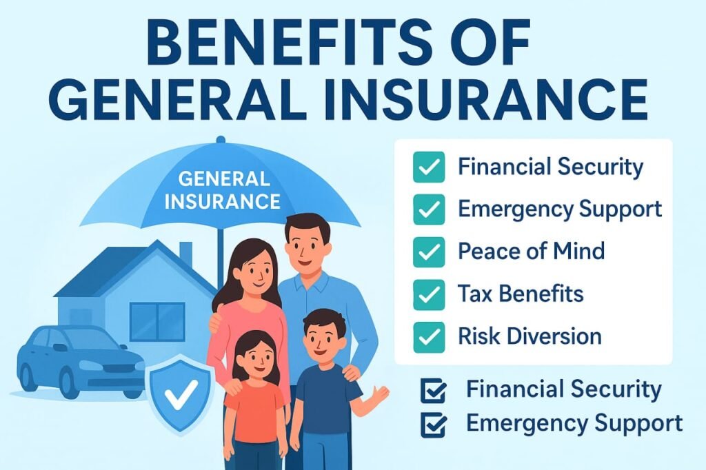 General Insurance = किसी भी तरह के Financial Loss से Protection, चाहे वह Health हो, Vehicle हो, Property हो या Travel।