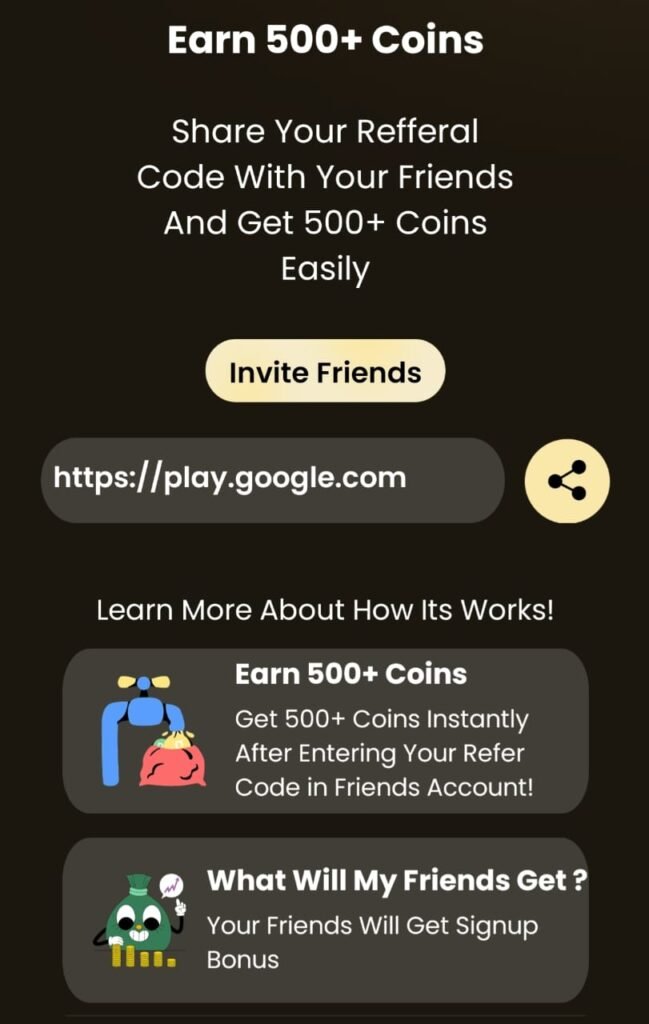 Step – Daily Bonus & Refer Code से Extra Coins पाएं