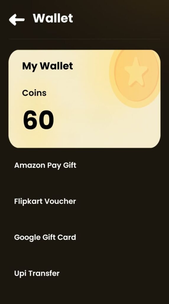 App खोलें और नीचे वाले menu में “Wallet” या “Redeem” option पर tap करें।